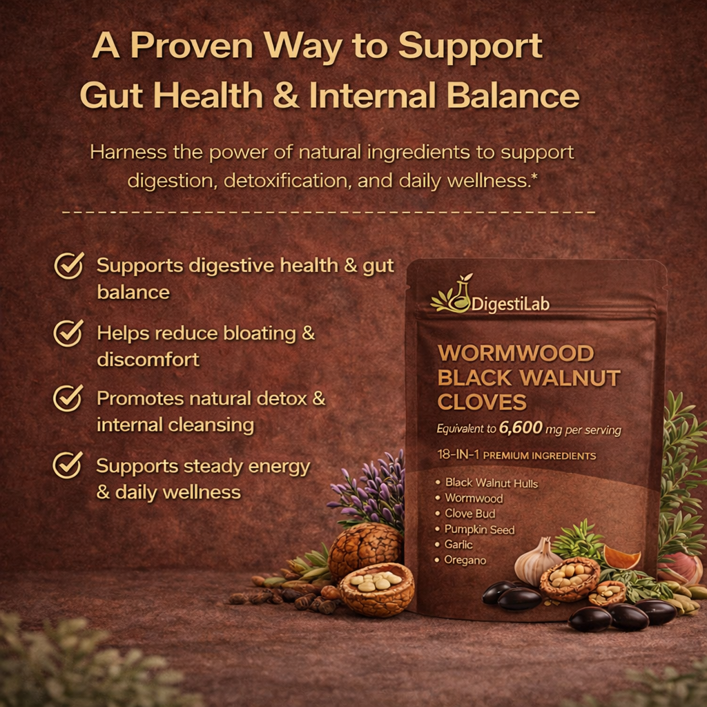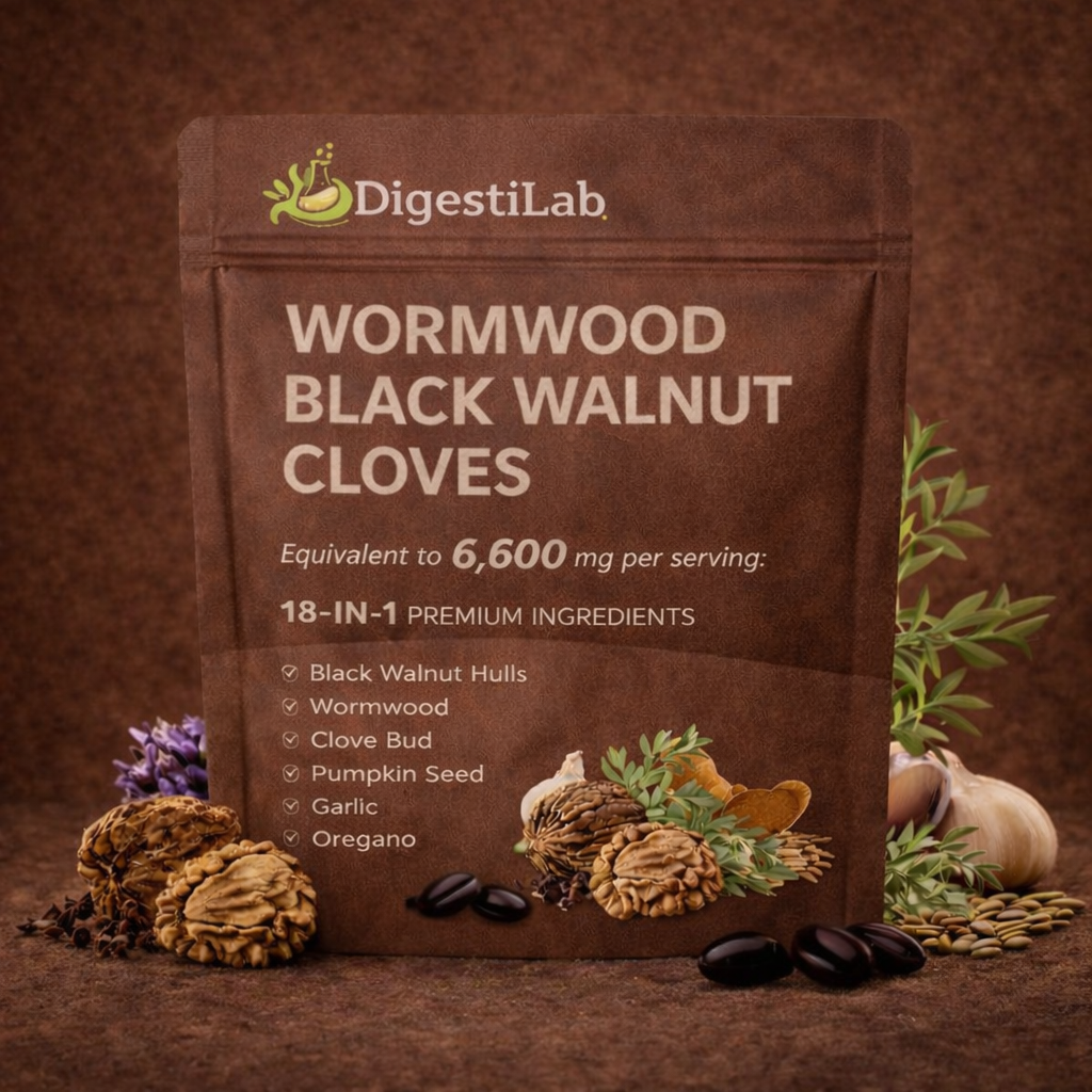 DigestiLab Wormwood Black Walnut Cloves is a powerful herbal blend made from premium plant-based ingredients, carefully formulated to support digestive health and internal balance. This advanced formula combines traditional botanicals known for their natural cleansing properties, helping your body maintain a healthier gut environment and reduce discomfort like bloating and irregular digestion.Rich in plant compounds and natural actives, this blend supports the body’s natural detox processes while promoting better nutrient absorption and overall digestive function. By helping restore balance from within, it can also contribute to more stable energy levels and daily wellness. What makes DigestiLab different is its commitment to quality and potency. Our formula features an 18-in-1 blend of carefully selected ingredients including wormwood, black walnut hulls, cloves, and more—without unnecessary fillers or additives. Designed for consistent daily use, DigestiLab delivers a clean, natural, and effective way to support your gut and feel your best every day.